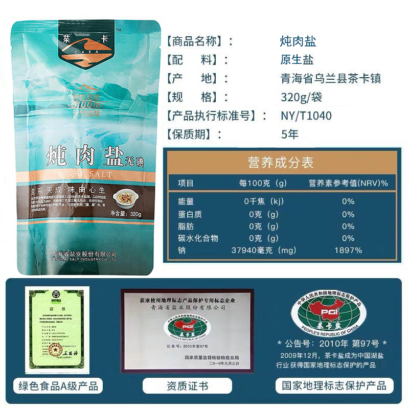 源自世界四大净区青海茶卡盐湖 天然结晶 富含氨基酸 无抗结剂 盐中精品