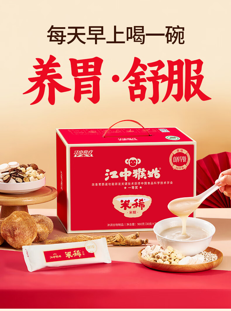 江中猴姑米稀养胃米糊30天装900g原味早餐猴菇流食中老年营养品人参送礼