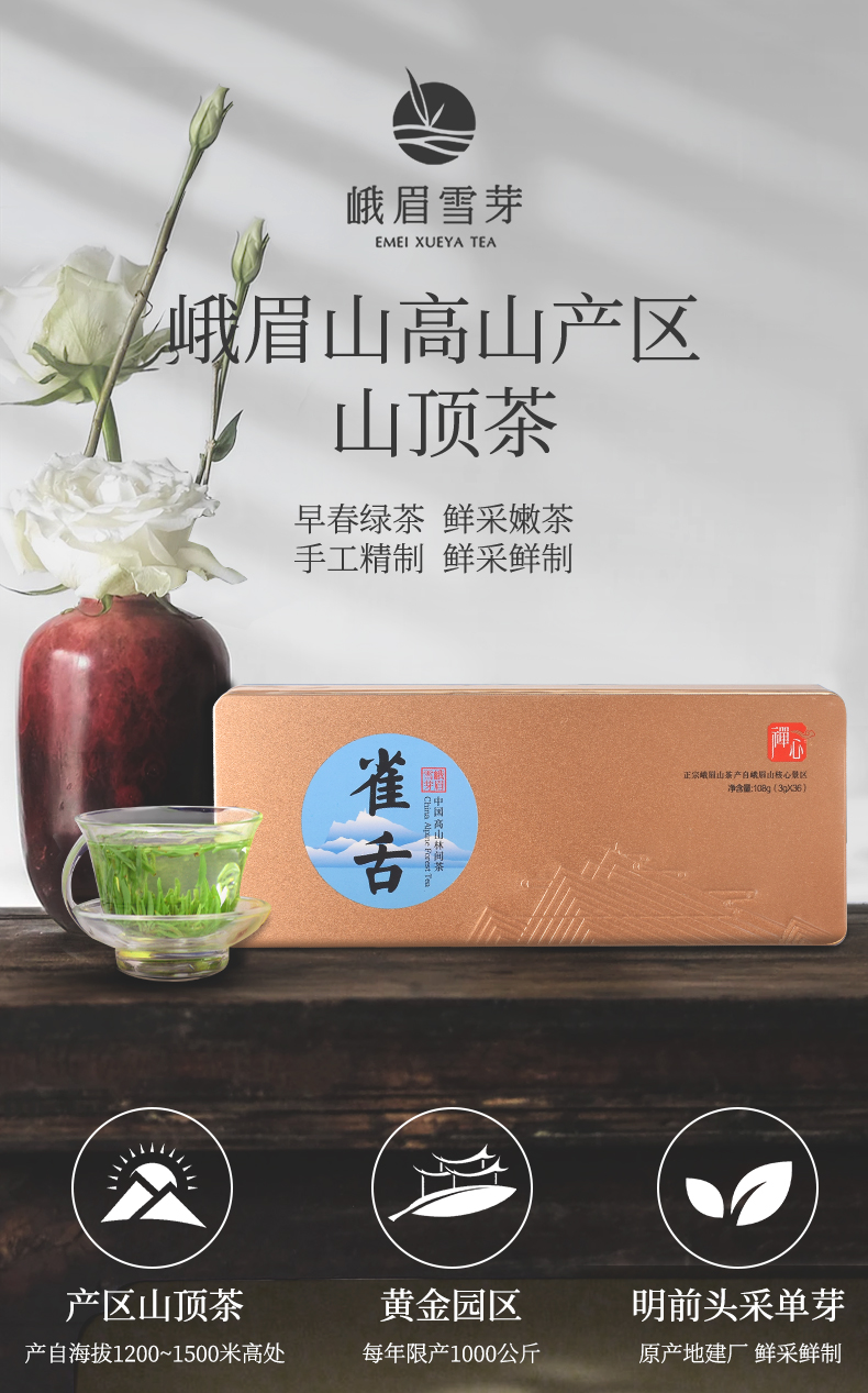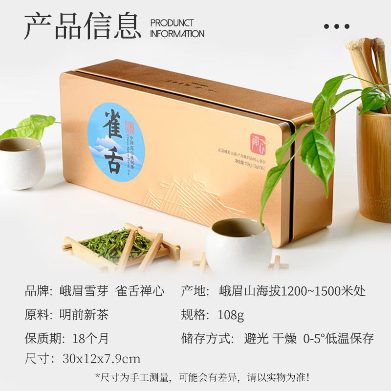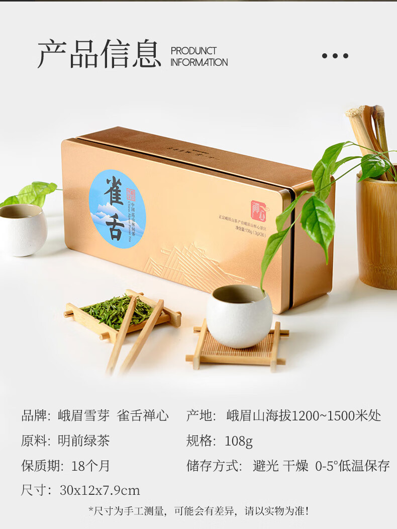 峨眉雪芽 2024年新茶 雀舌禅心绿茶 茶叶明前高山茗茶礼盒108g