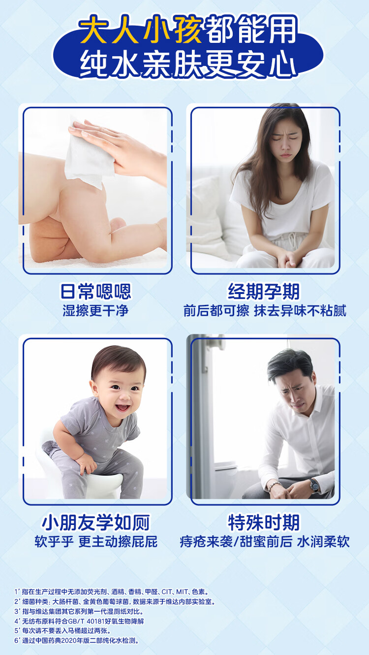 清风(APP)湿厕湿巾 天然无刺激 私处清洁湿纸巾 幼儿可用 40片/包*3