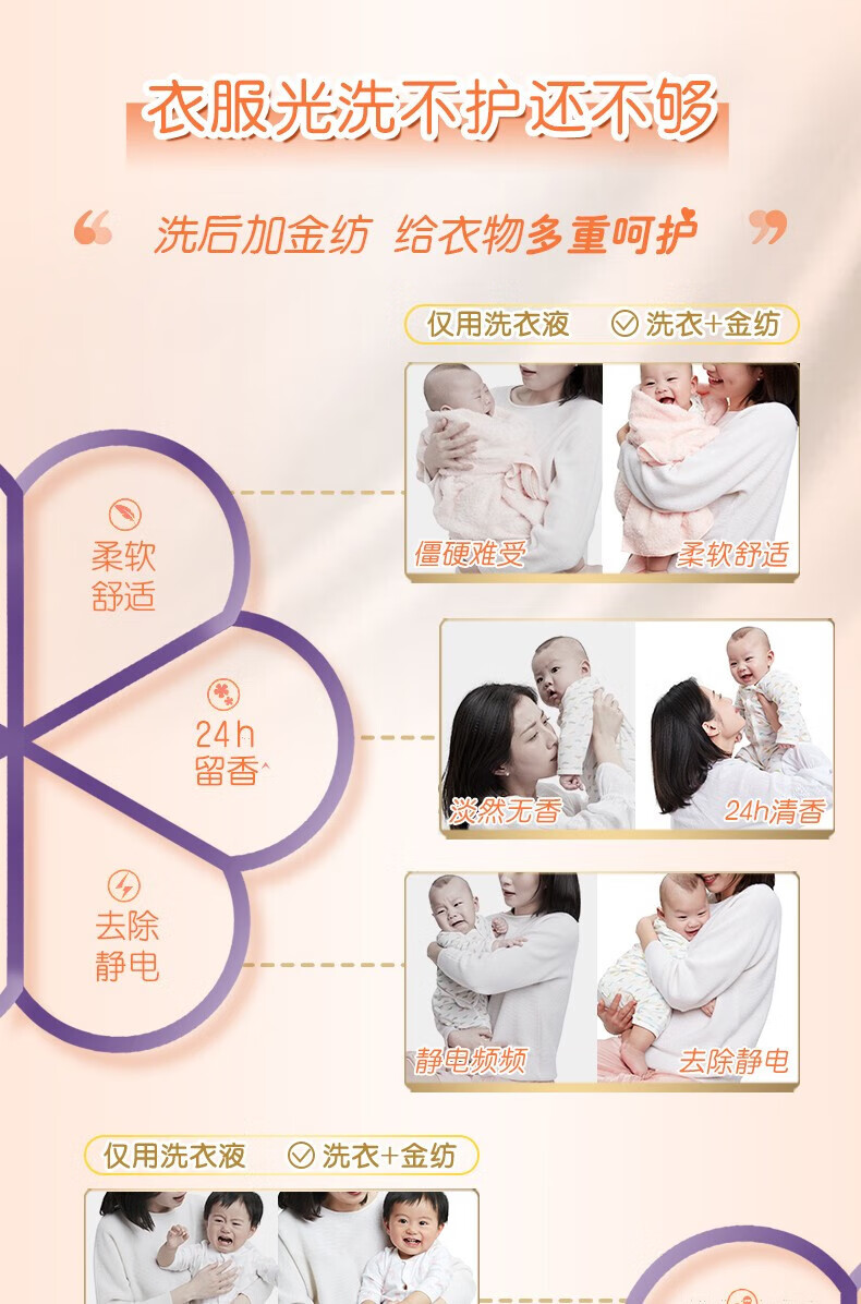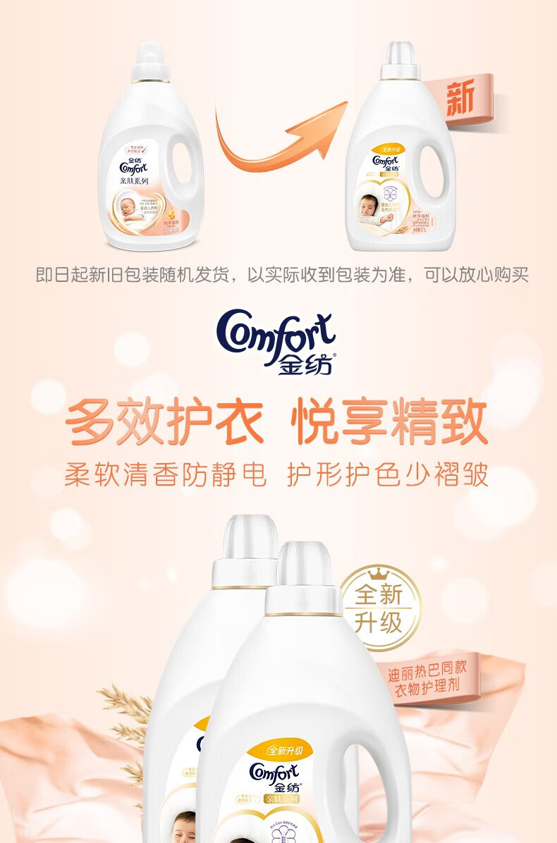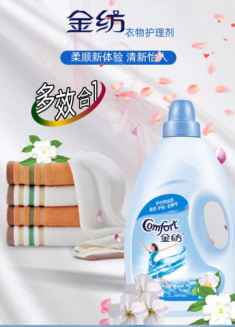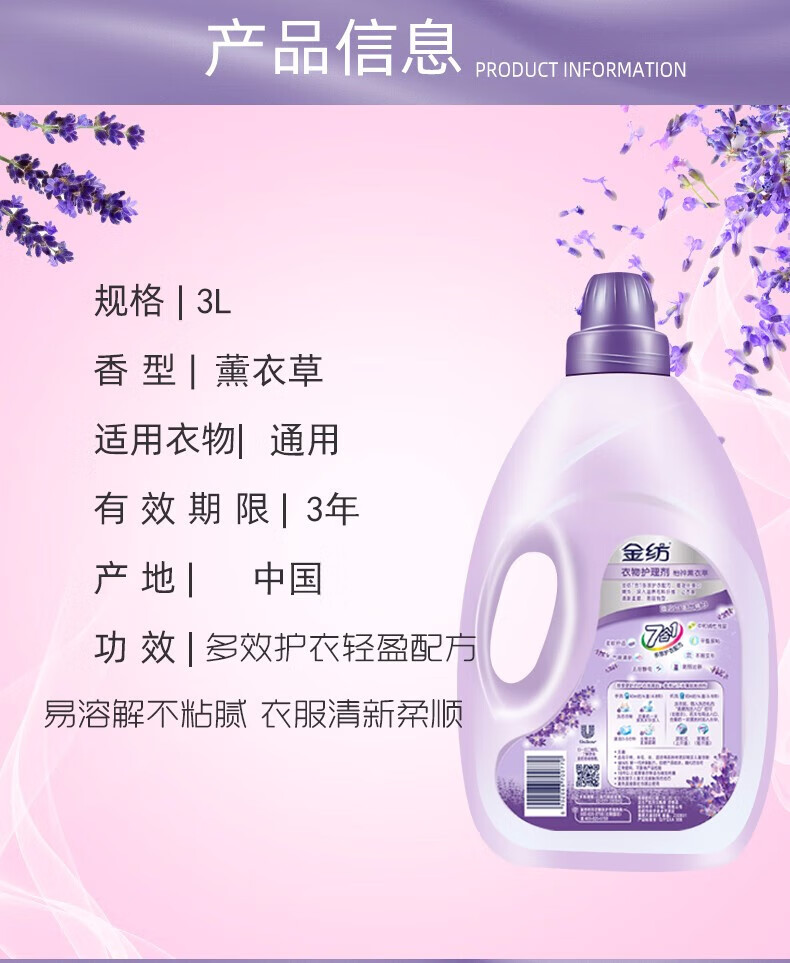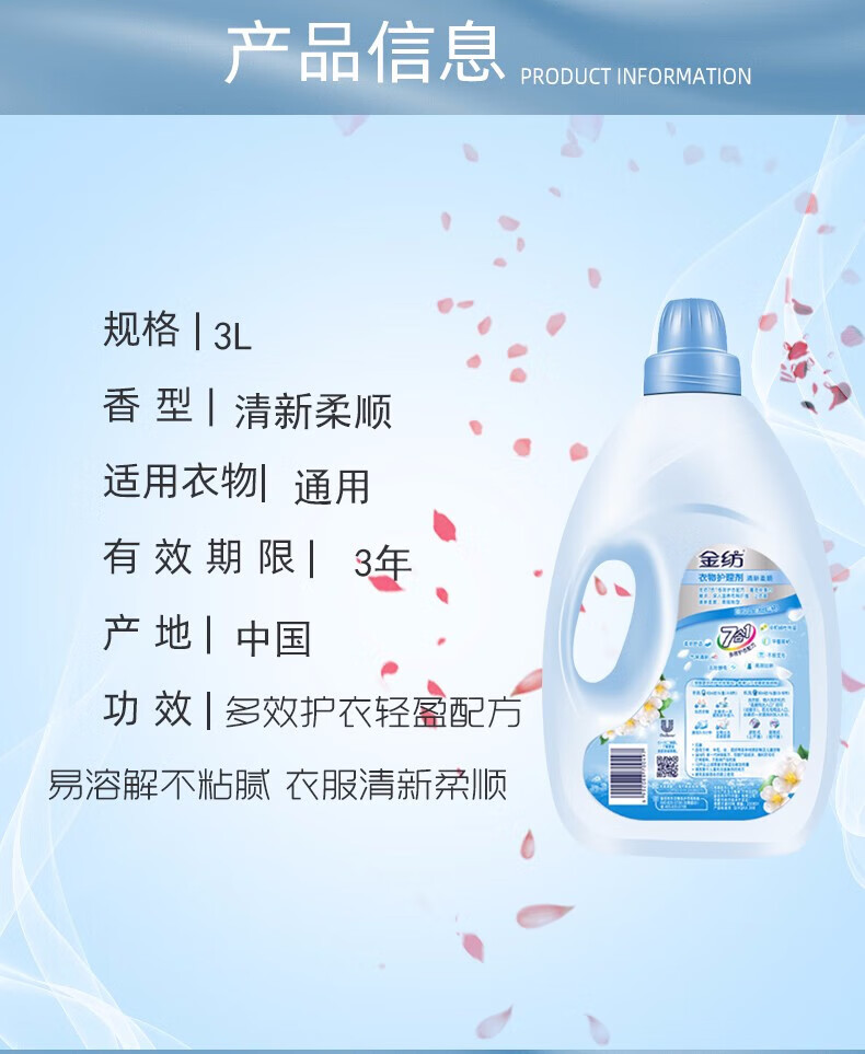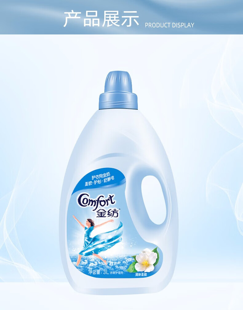 金纺 衣物柔顺剂护理剂 纯净温和1KG*5瓶 护色去除静电持久留香柔软剂