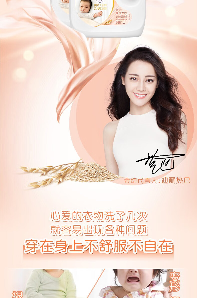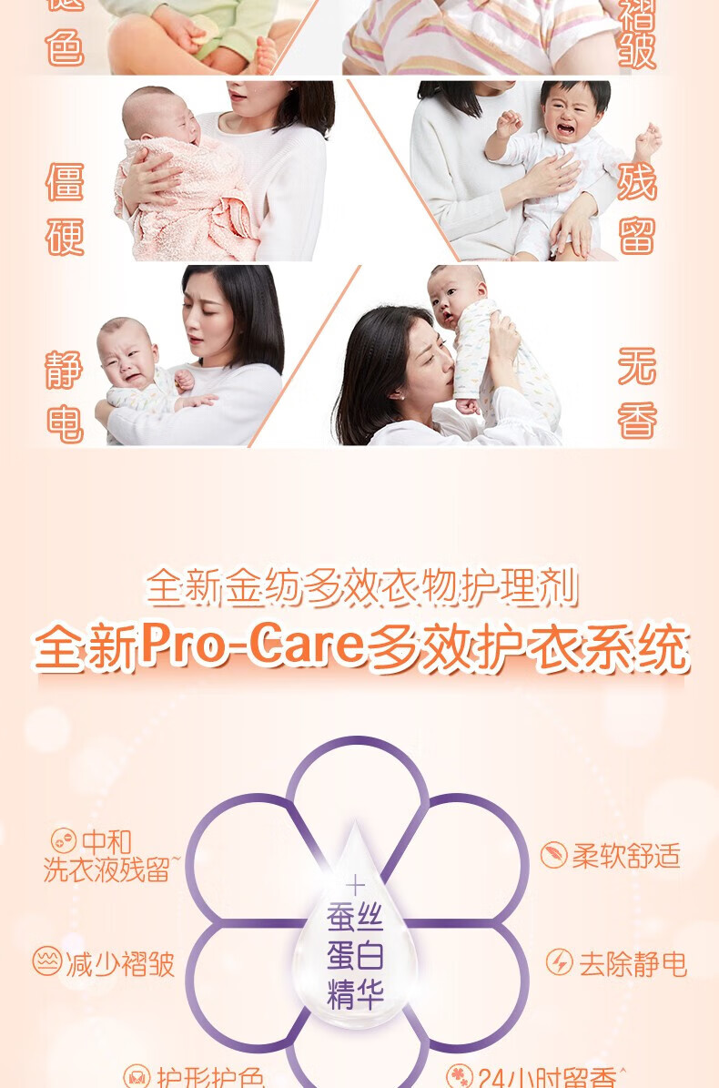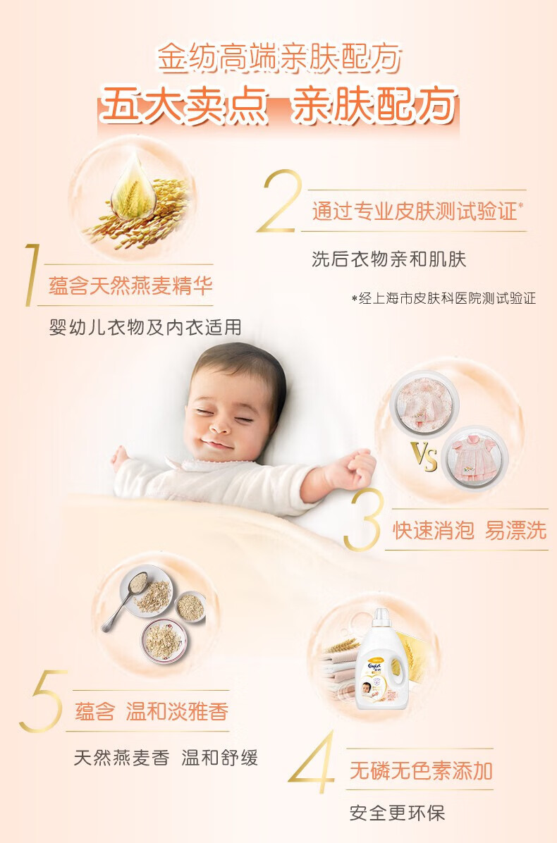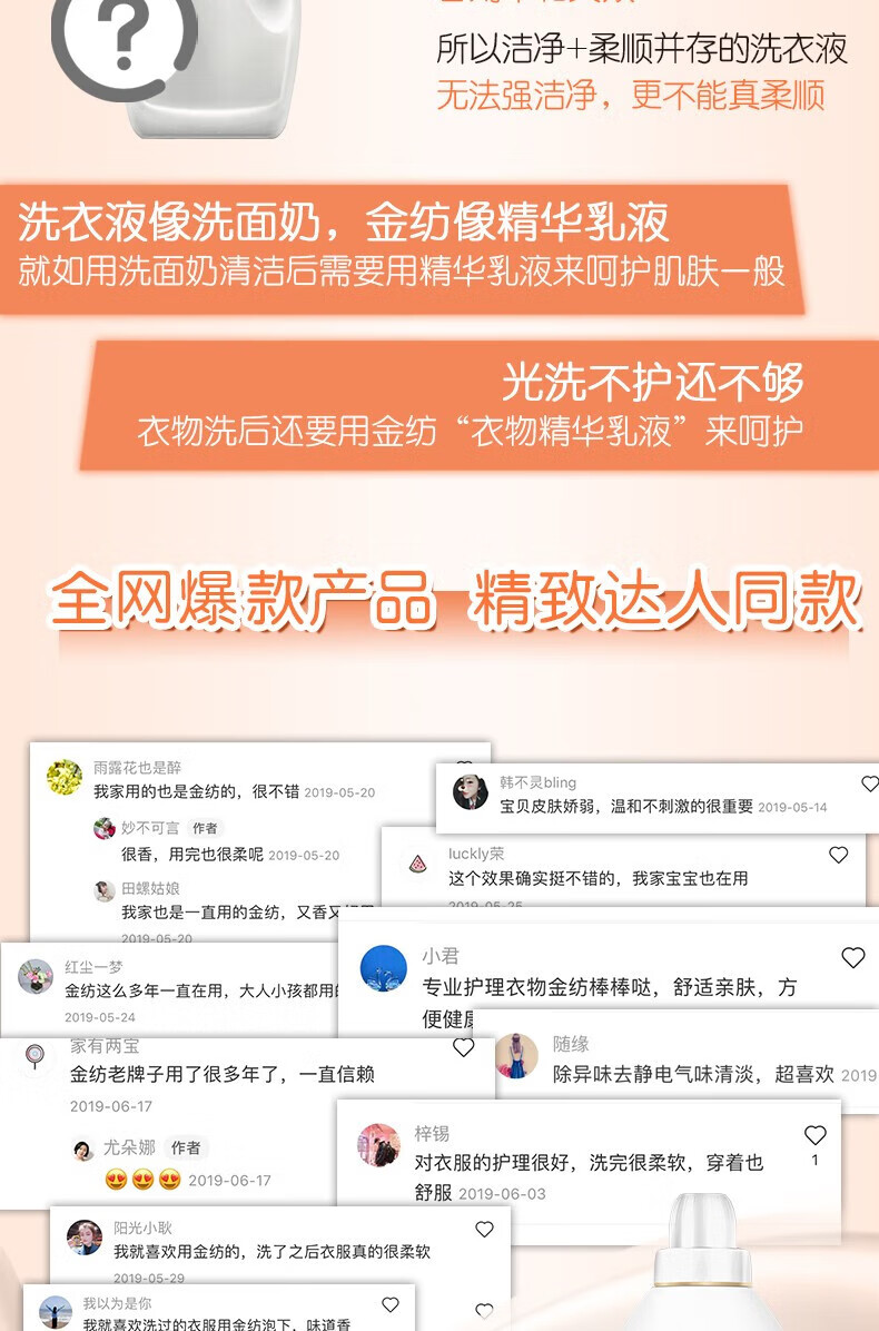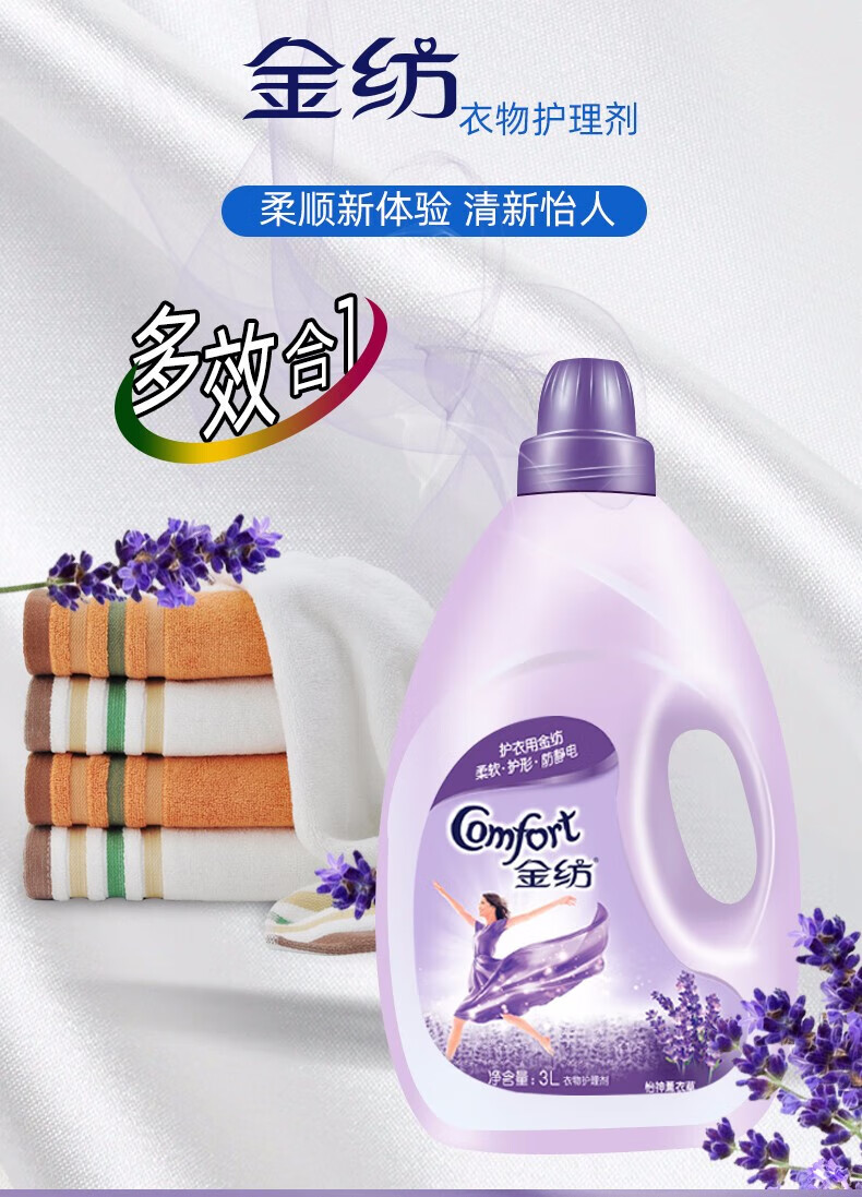 金纺 衣物柔顺剂护理剂 纯净温和1KG*5瓶 护色去除静电持久留香柔软剂