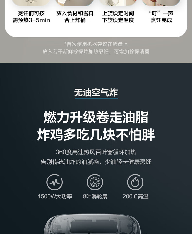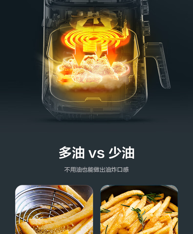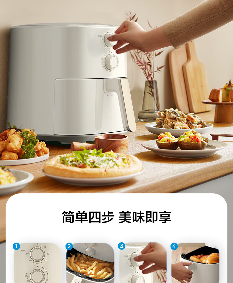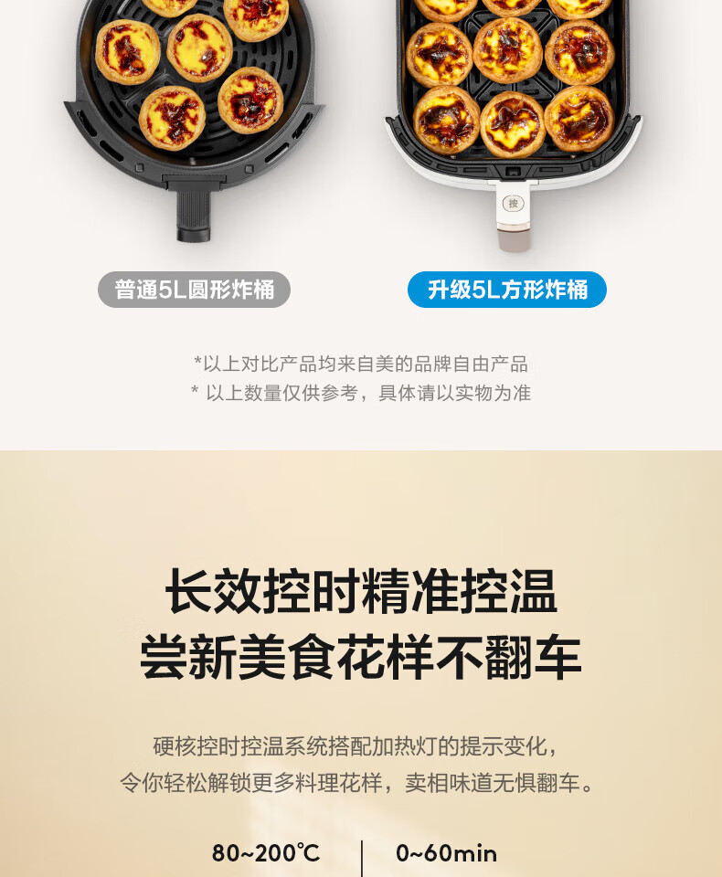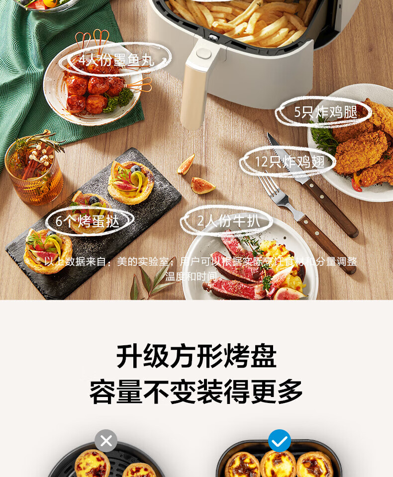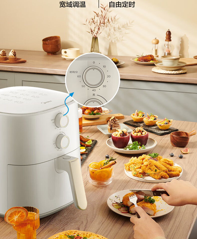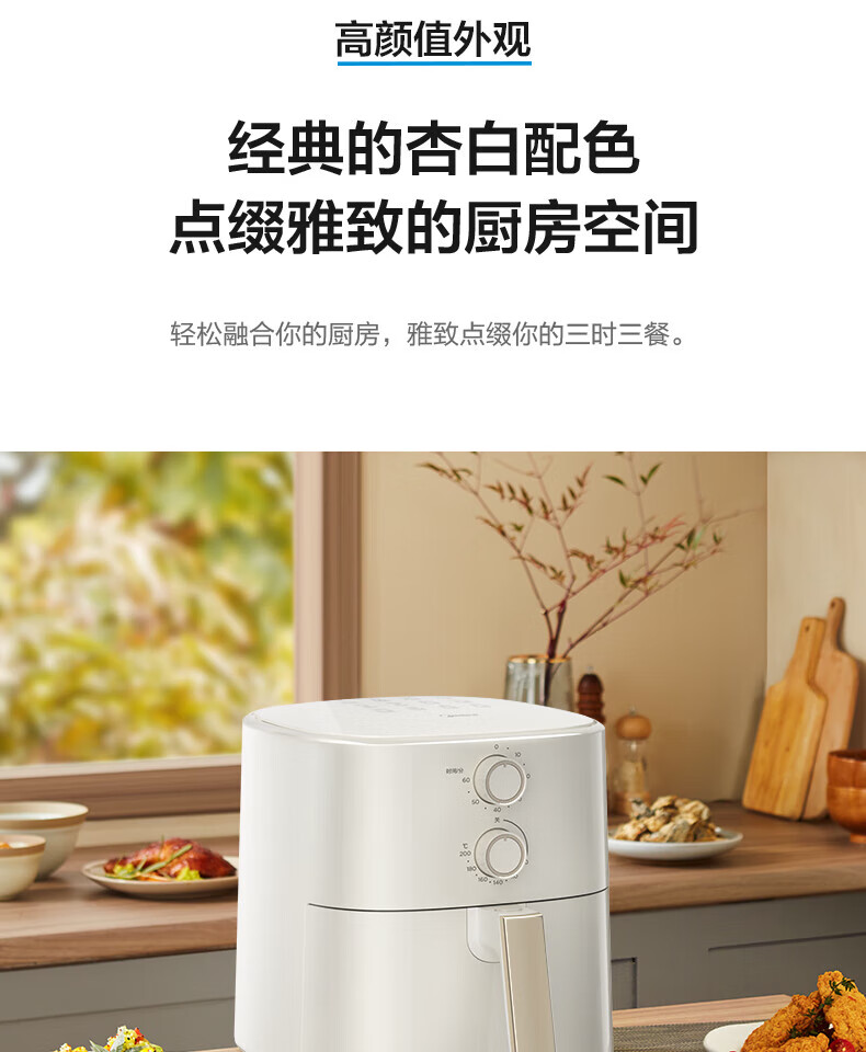 美的(Midea)5L空气炸锅MF-KZ50M4-707大容量家用多功能 低油轻脂 精准控温大功率电炸锅烤箱薯条机KZ50M4-707