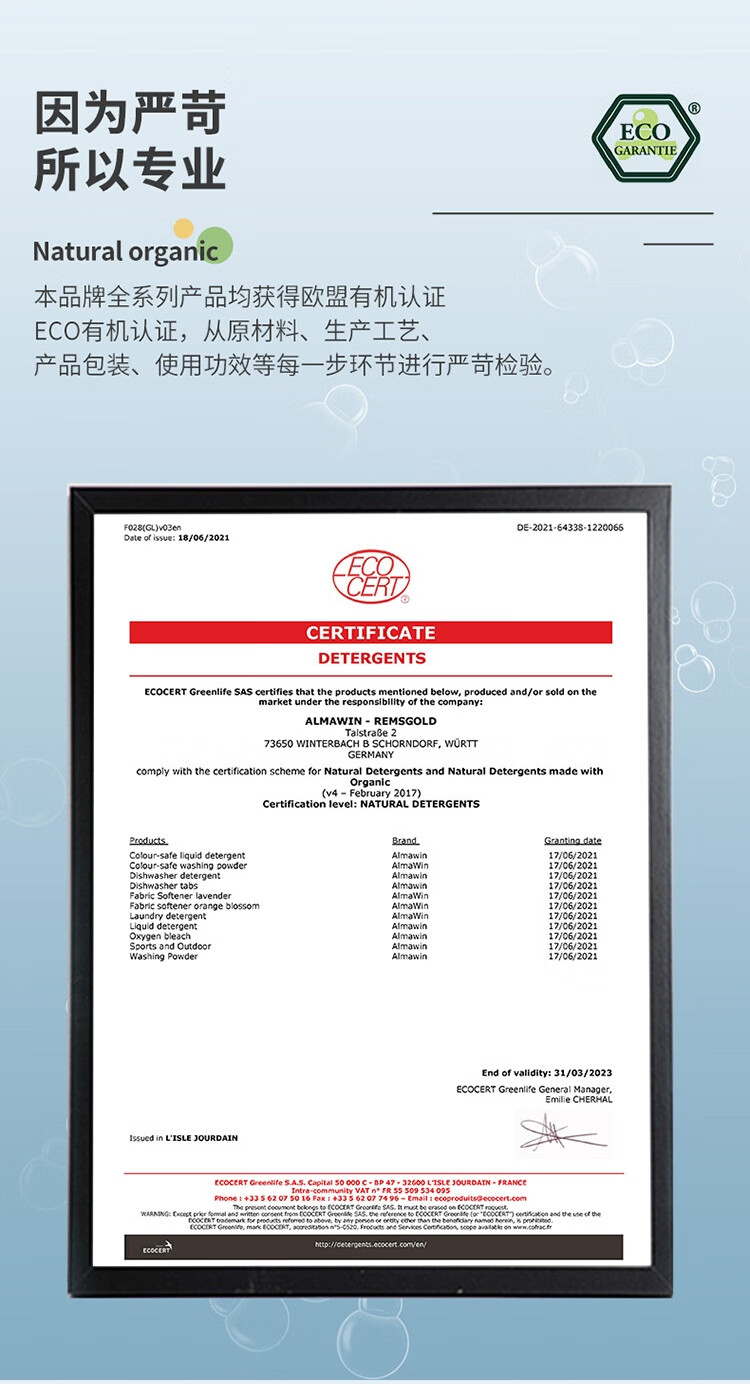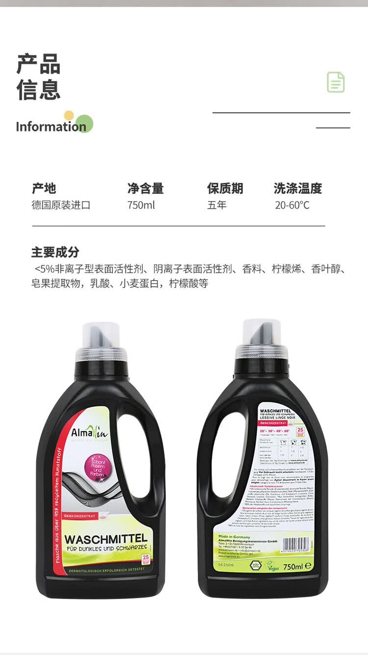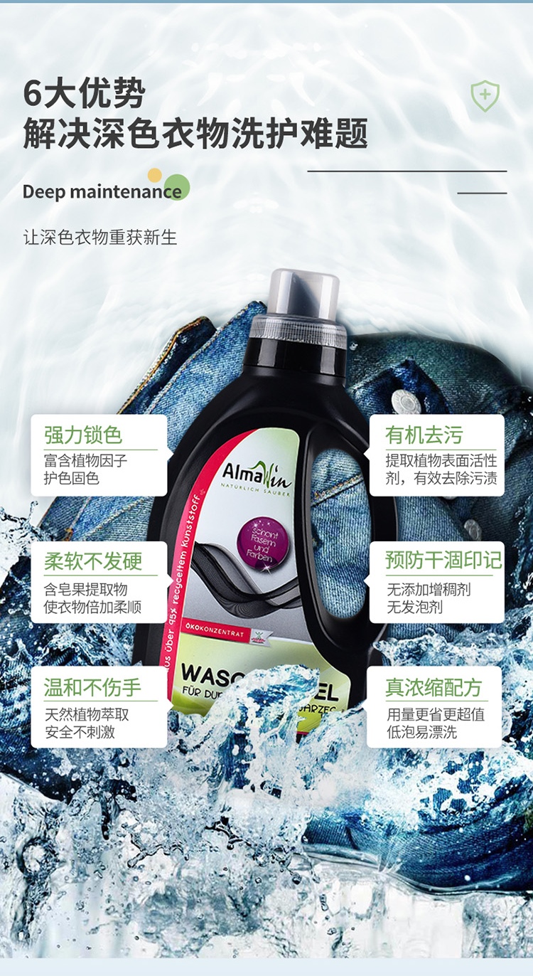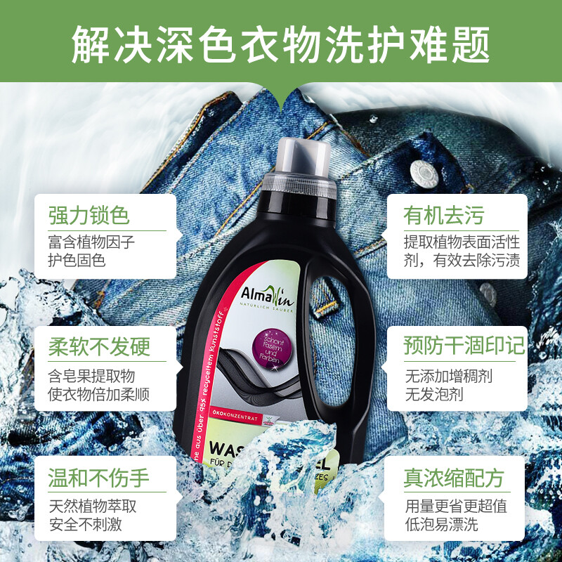 almawin 洗衣液牛仔裤风衣固色清洁去渍锁色洗涤剂不泛白 德国进口750ml