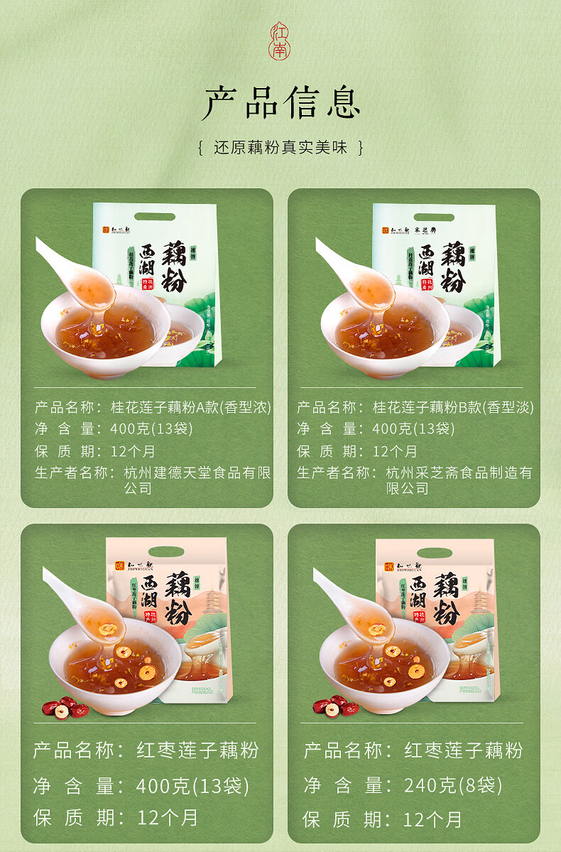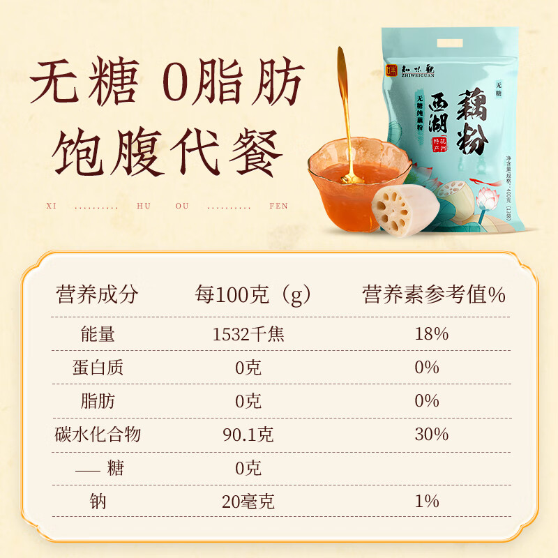 知味观无糖纯藕粉 中华老字号杭州西湖特产 饮品冲泡早餐代餐400g