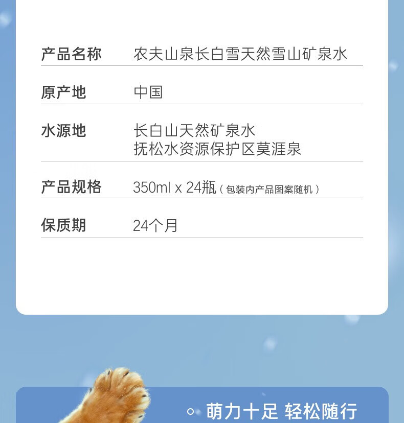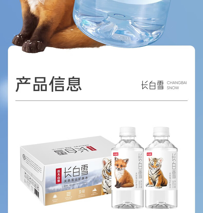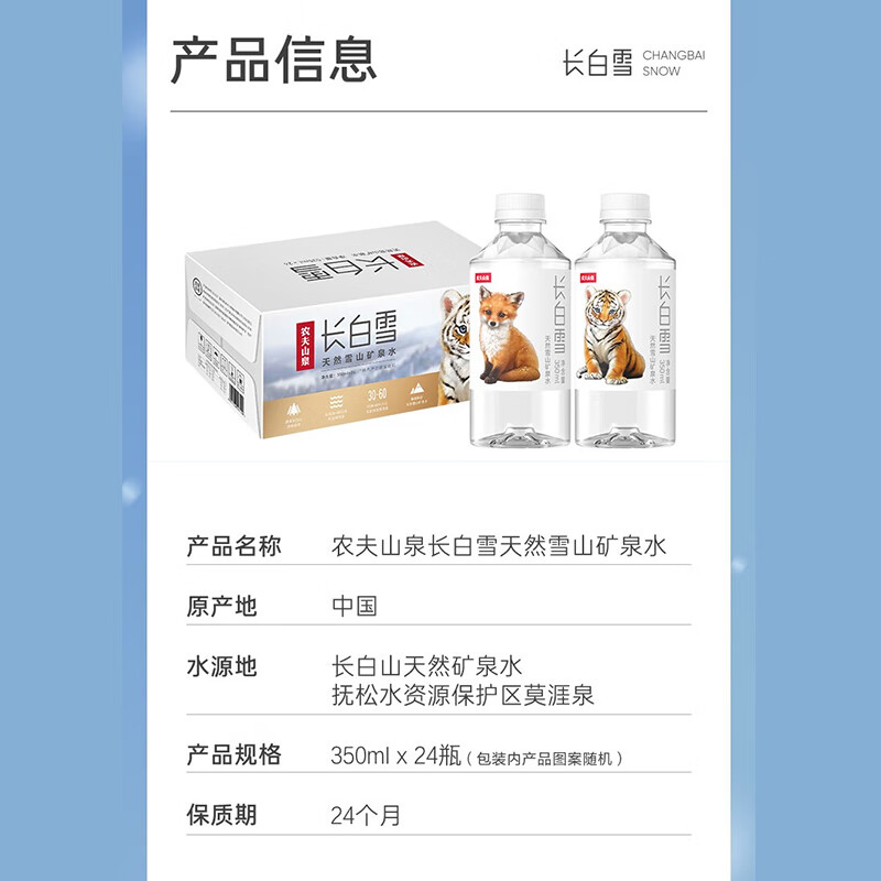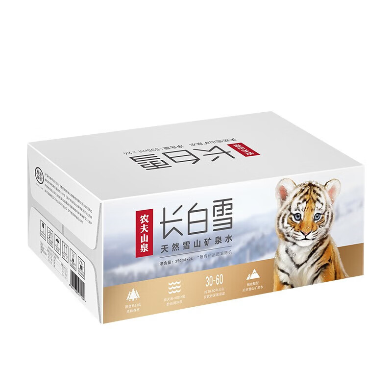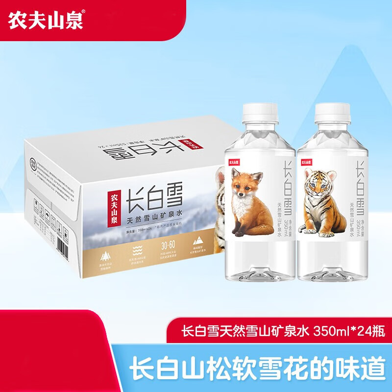 农夫山泉 饮用天然雪山矿泉水长白雪350ml*24瓶/箱*2箱 日常饮用 随行便携