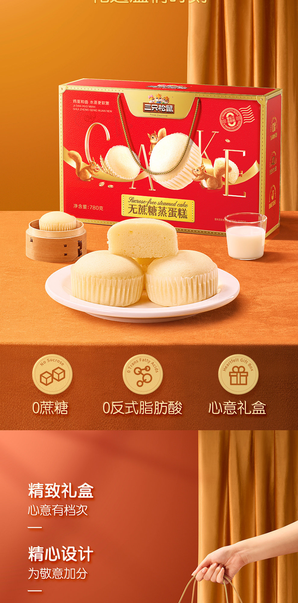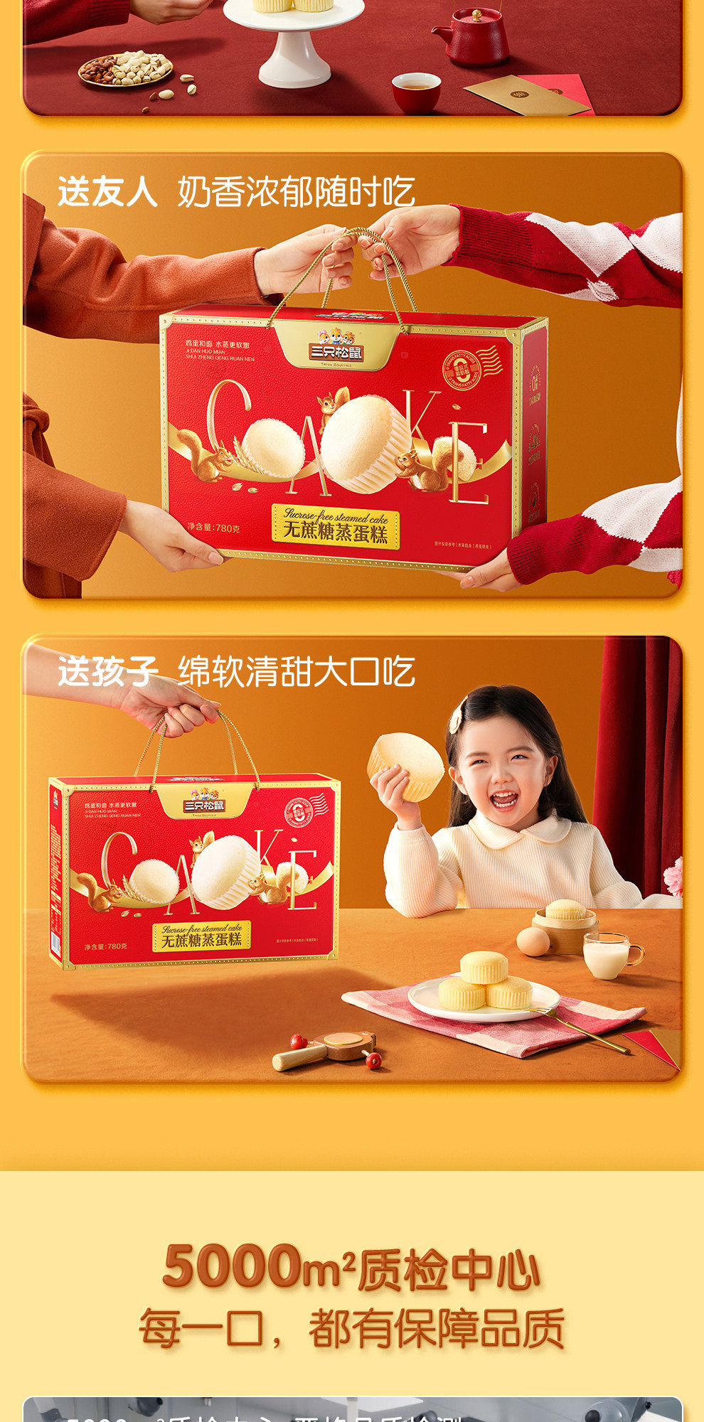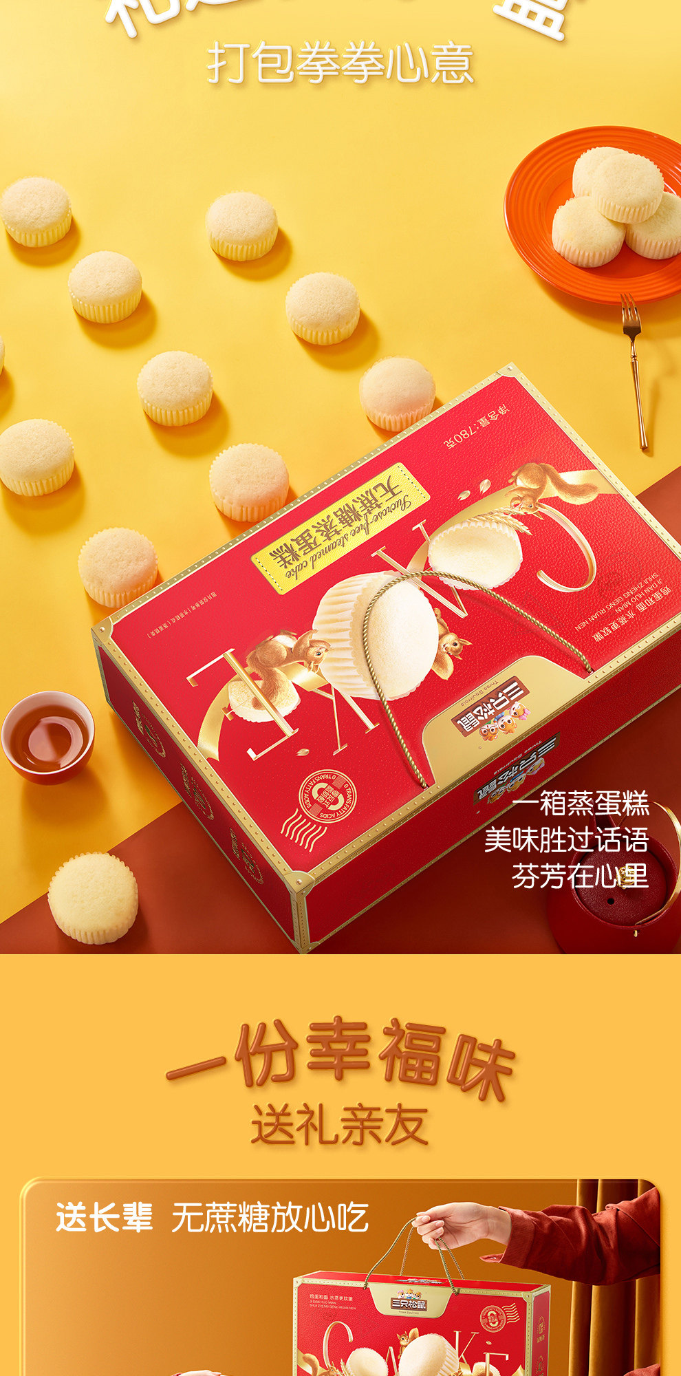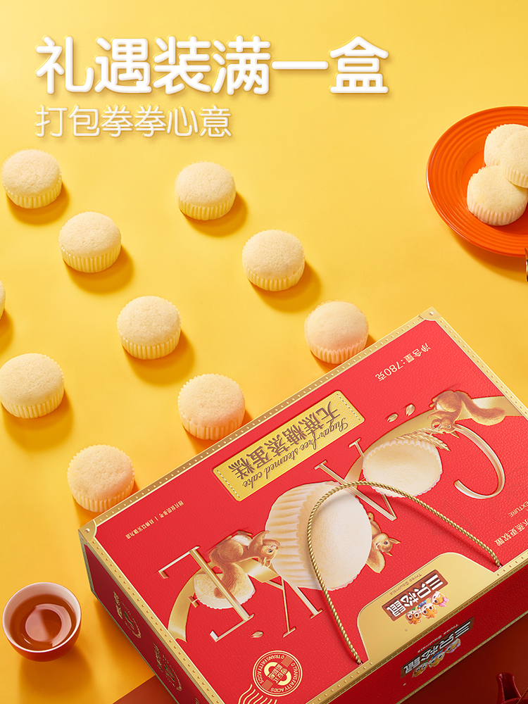 三只松鼠蛋黄酥红豆味送礼盒中式糕点麻薯雪媚娘休闲零食年货