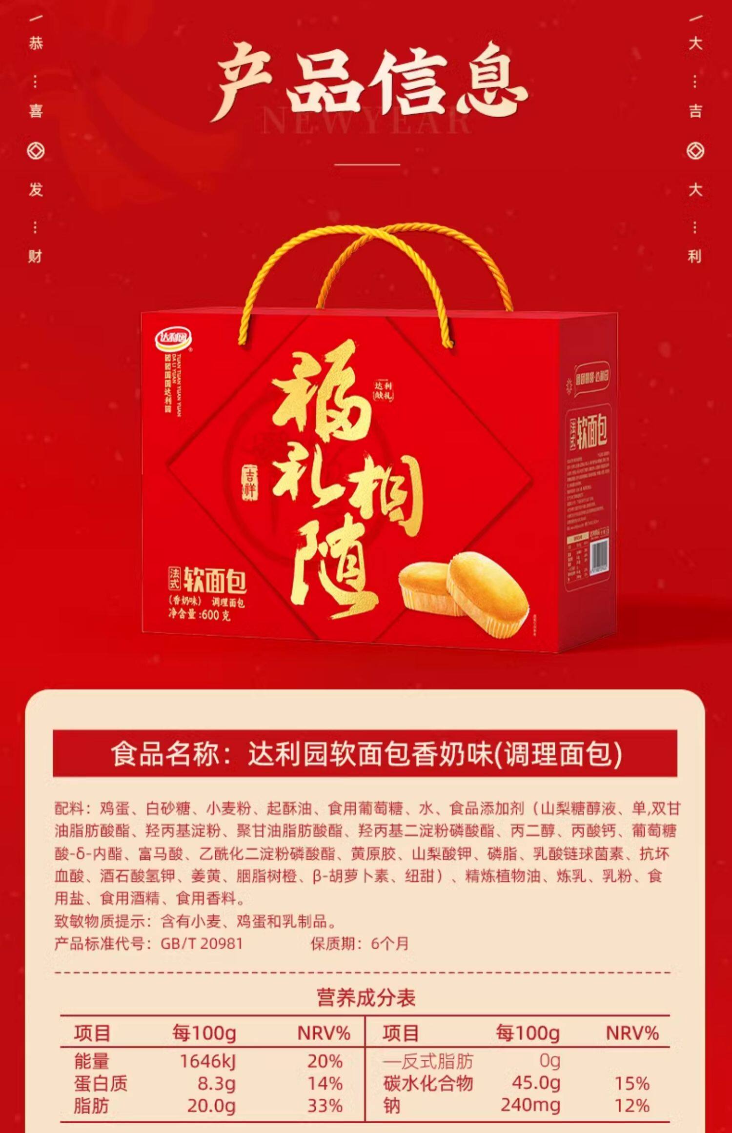 达利园好吃点年货礼盒装面包蛋糕春节过年送礼佳品零食糕点