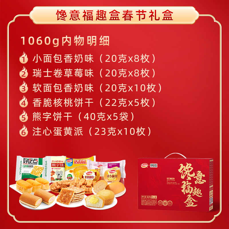 达利园软面包年货礼盒600g整箱面包早餐春节过年送礼佳品零食糕点