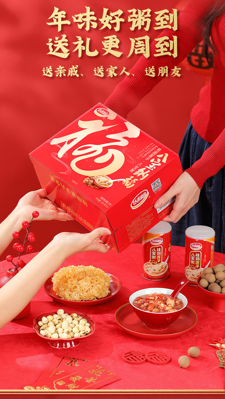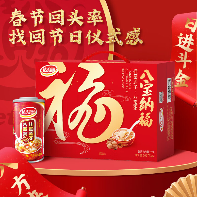 达利园360g*12罐达利园桂圆莲子八宝粥送礼年货礼盒整箱装早餐粥即食